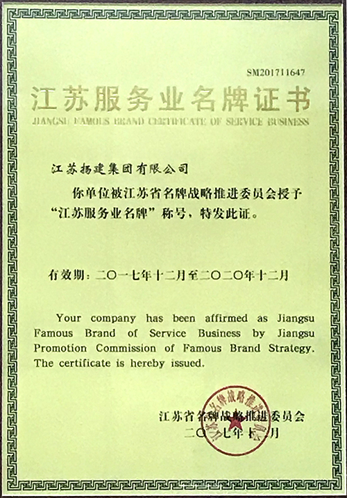 集團(tuán)榮獲2017年度“江蘇服務(wù)業(yè)名牌”稱號