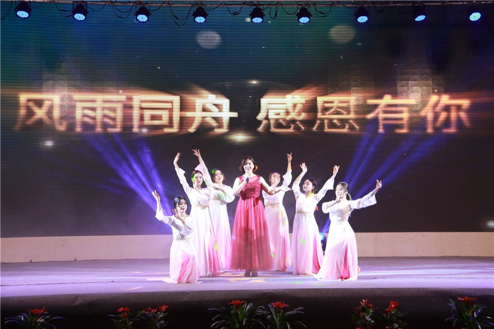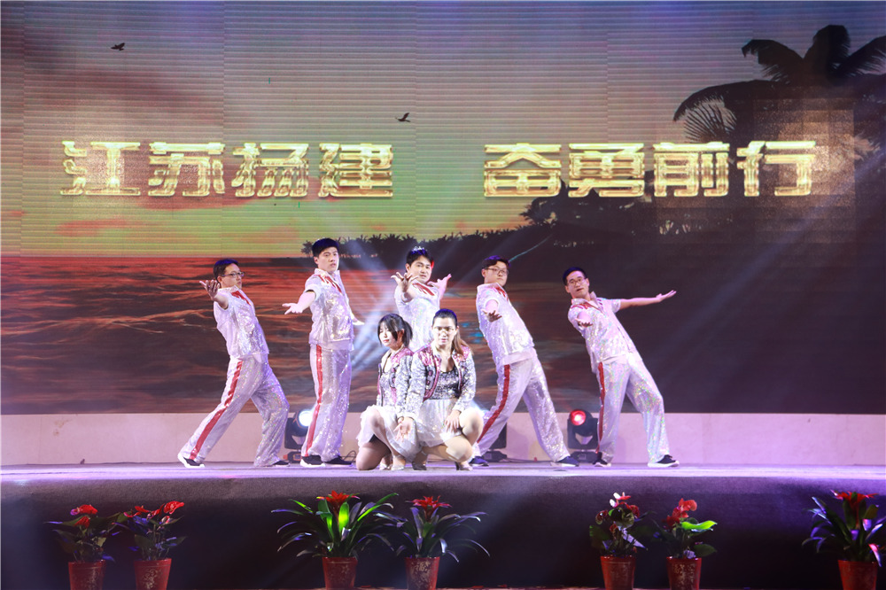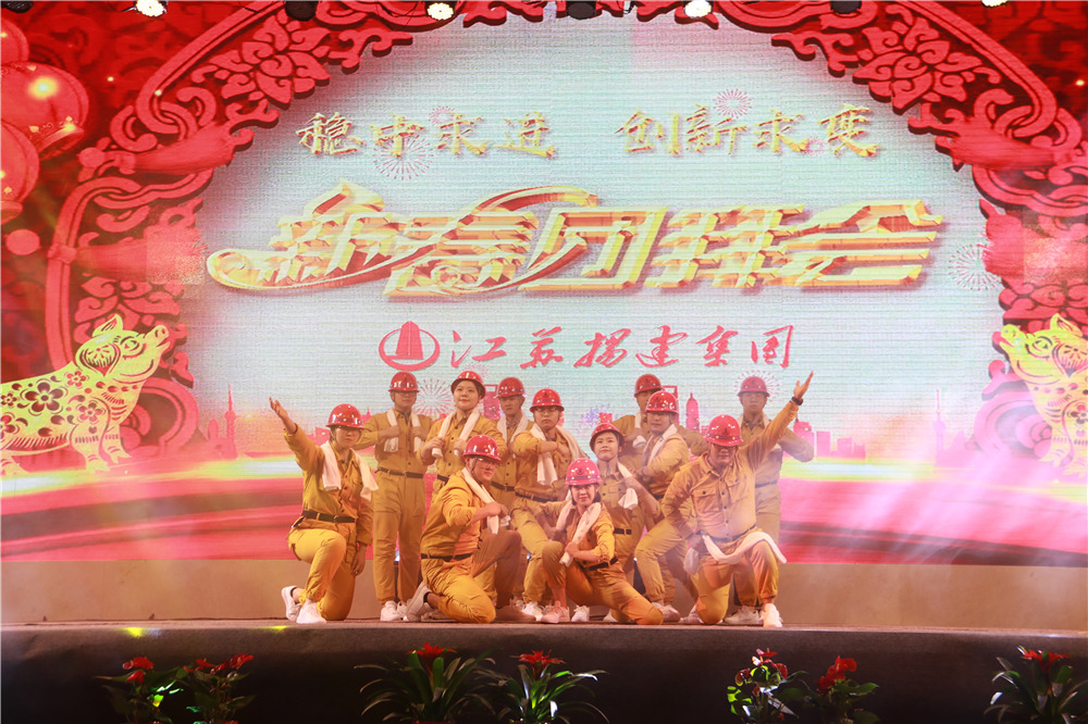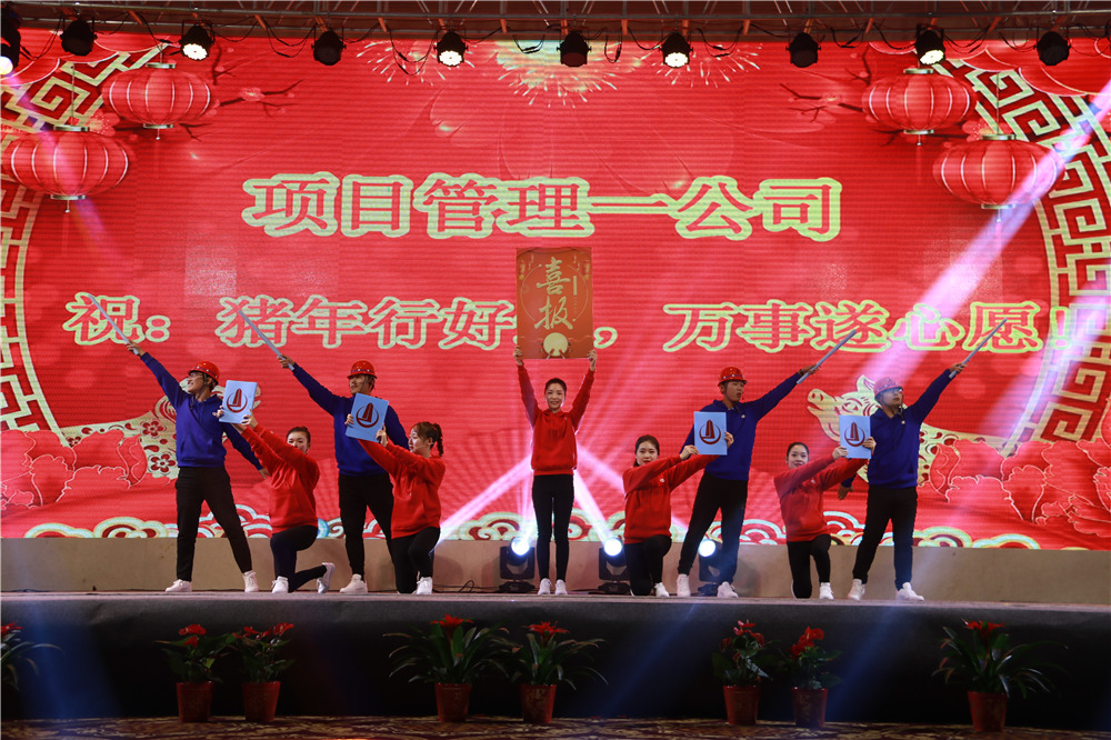 隨后,華中華鼎公司聯(lián)袂表演歌伴舞《我愛(ài)你中國(guó)&相親相愛(ài)一家人》,四公司員工表演的音樂(lè)快板《揚(yáng)建花開(kāi)大上?!?,講述了四公司2108年發(fā)展喜事多,業(yè)績(jī)上臺(tái)階,全速開(kāi)發(fā)江浙滬的發(fā)展業(yè)績(jī);樁基公司以評(píng)話+講述+歌舞的形式表演了《我們是快樂(lè)的一家人》;一公司的搖滾說(shuō)唱《一公司,爭(zhēng)第一》節(jié)目,表達(dá)了舍我其誰(shuí)、永爭(zhēng)第一的豪情;三公司年輕員工表演了音詩(shī)畫(huà)劇《建筑“舞”者》;二公司的90后員工表演了,配樂(lè)朗誦《厲害了,揚(yáng)建90后》,表達(dá)了立志與前輩們一起譜寫(xiě)揚(yáng)建發(fā)展新篇章的雄心;海南島的阿哥阿妹表演了舞蹈《筑夢(mèng)城市》;機(jī)電公司的說(shuō)唱歌舞《追夢(mèng)揚(yáng)建》,描繪了2019將是承載新夢(mèng)想、發(fā)力新業(yè)態(tài)的嶄新一年;華發(fā)公司的音樂(lè)短劇《新時(shí)代的弄潮者》,展示了揚(yáng)建人揚(yáng)建人薪火相傳66載,緊跟時(shí)代,勇立潮頭的精神面貌;華盛周材公司最后表演了寓意深刻的歌舞+武術(shù)《風(fēng)雨同舟,感恩有你》。