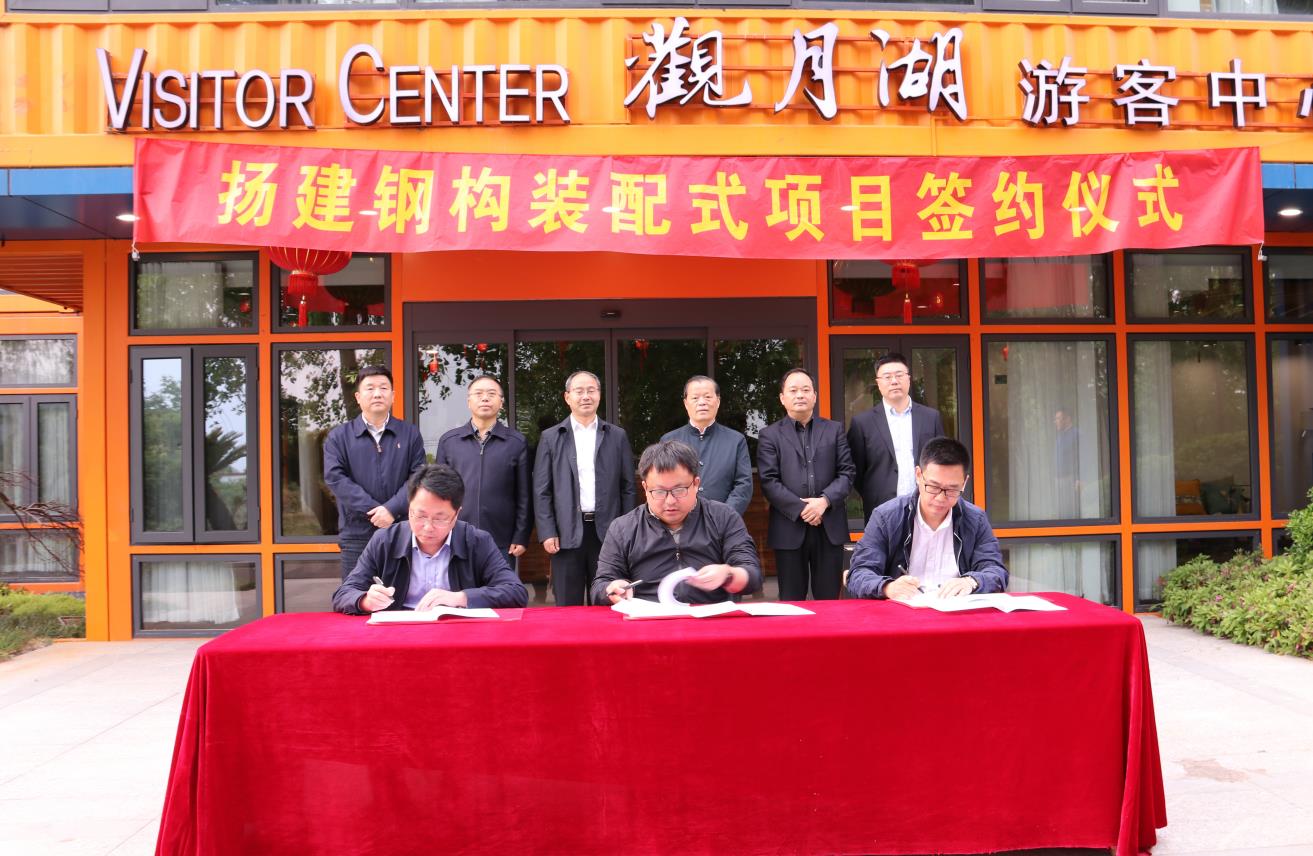 揚(yáng)建網(wǎng)訊 5月6日,集團(tuán)鋼構(gòu)裝配式項(xiàng)目簽約儀式在揚(yáng)建現(xiàn)代農(nóng)業(yè)園舉行。集團(tuán)董事長曹德榮、總經(jīng)理鄒厚存、副總經(jīng)理兼總會(huì)計(jì)師陳滸、鋼結(jié)構(gòu)分公司經(jīng)理王嶸、華晟公司經(jīng)理季學(xué)軍、儀征經(jīng)濟(jì)開發(fā)區(qū)管委會(huì)主任劉長榮、副書記楊恩鵬、副主任華鵬等領(lǐng)導(dǎo)參與或見證了簽約。