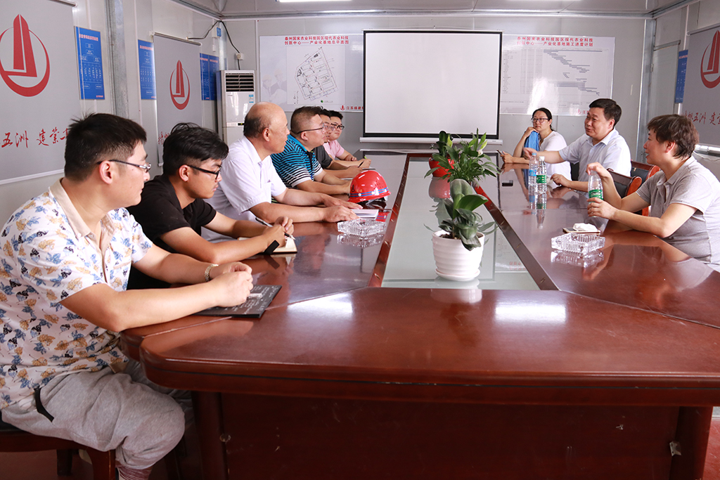 黨委書記康往東在慰問現(xiàn)代農(nóng)業(yè)科技創(chuàng)新中心產(chǎn)業(yè)化基地現(xiàn)場施工人員時,首先察看了項目施工現(xiàn)場,詳細了解了項目員工的工作與生活狀況。要求強化安全措施,確保工程質(zhì)量,保障施工人員的人身健康和安全??偨?jīng)理鄒厚存在慰問工地的同時,認真檢查詢問項目夏季高溫現(xiàn)場安全生產(chǎn)和落實市64號文件精神情況。