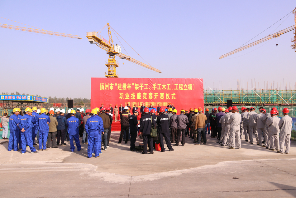 揚建網(wǎng)訊 10月31日,由揚州市總工會、人社局、住建局聯(lián)合主辦,高郵市總工會、人社局、住建局承辦,高郵市建設(shè)投資發(fā)展集團有限公司協(xié)辦的揚州市“建投杯”架子工、手工木工(工程立模)職業(yè)技能競賽在高郵市潤豐苑項目部工地隆重舉辦。