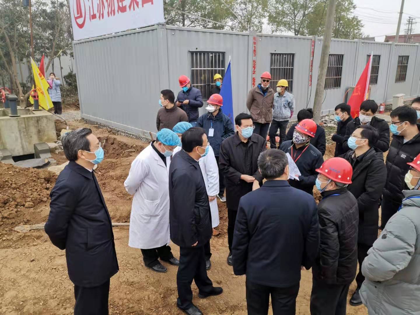 項(xiàng)目開工以來,得到了市委市政府領(lǐng)導(dǎo)的關(guān)懷。2月6日上午,國務(wù)院應(yīng)對疫情防控工作指導(dǎo)組、揚(yáng)州市委夏心旻書記、張寶娟市長、市委常委韓鏵秘書長何金發(fā)副市長、業(yè)主及建工控股的領(lǐng)導(dǎo)分別來項(xiàng)目一線檢查指導(dǎo)。夏書記詳細(xì)詢問了“蒼頡山”工程的規(guī)劃設(shè)計及進(jìn)展情況,對揚(yáng)建鐵軍沖鋒在抗擊疫情第一線的擔(dān)當(dāng)精神給予高度肯定,同時叮囑所有項(xiàng)目參建人員做好自我防護(hù),同心協(xié)力、科學(xué)施工,按期完成突擊建設(shè)任務(wù),為我市乃至全國抗疫戰(zhàn)爭貢獻(xiàn)力量。