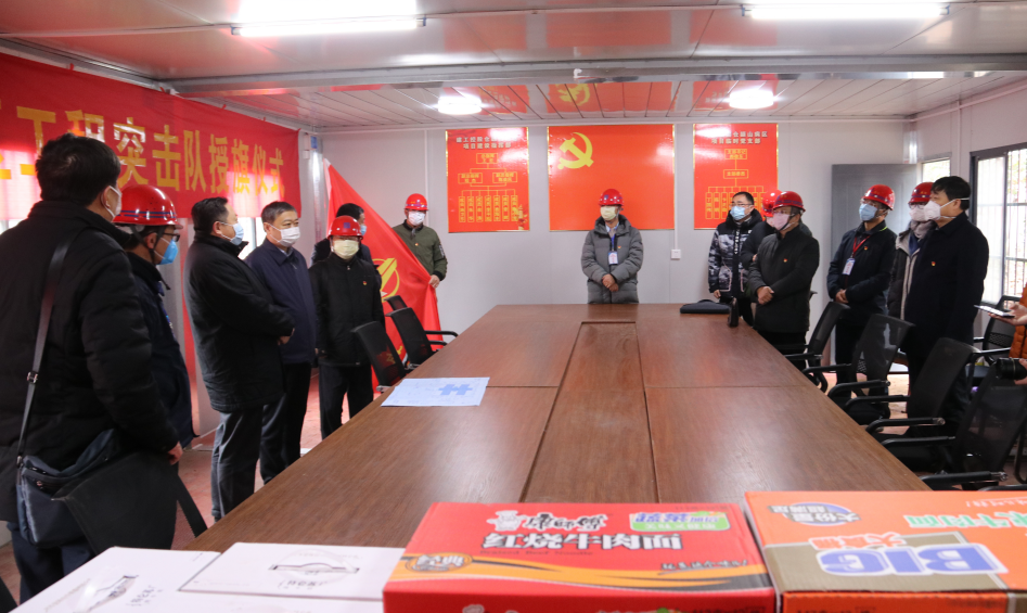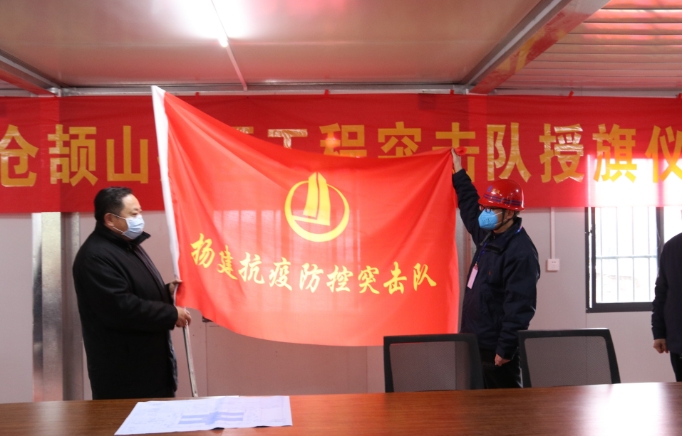 王主任在向我集團(tuán)蒼頡山病區(qū)項(xiàng)目臨時(shí)黨支部書記、揚(yáng)建抗疫防控突擊隊(duì)隊(duì)長郝敬東授旗,并希望揚(yáng)建抗疫防控突擊隊(duì)能夠克服一切困難,始終發(fā)揚(yáng)揚(yáng)建人特別能吃苦、特別能戰(zhàn)斗、特別能奉獻(xiàn)的精神,牢固樹立龍頭企業(yè)的使命意識(shí)、擔(dān)當(dāng)意識(shí),確保高質(zhì)量、高效率完成市委市政府交辦的建設(shè)任務(wù),為疫情防控做貢獻(xiàn)。