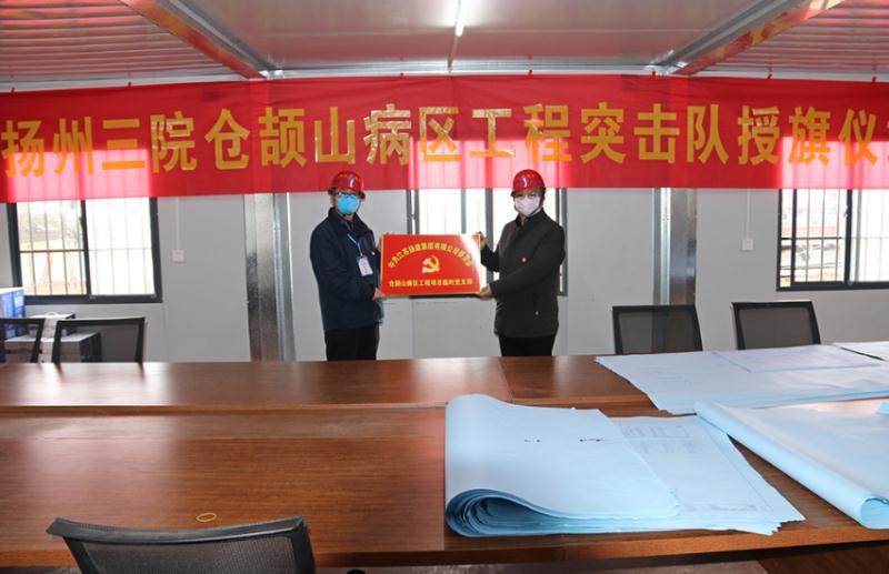 隨后,我集團(tuán)黨委副書記張振新代表集團(tuán)黨委向項(xiàng)目臨時(shí)黨支部書記郝敬東授中共江蘇揚(yáng)建集團(tuán)有限公司委員會(huì)蒼頡山病區(qū)臨時(shí)黨支部牌匾。