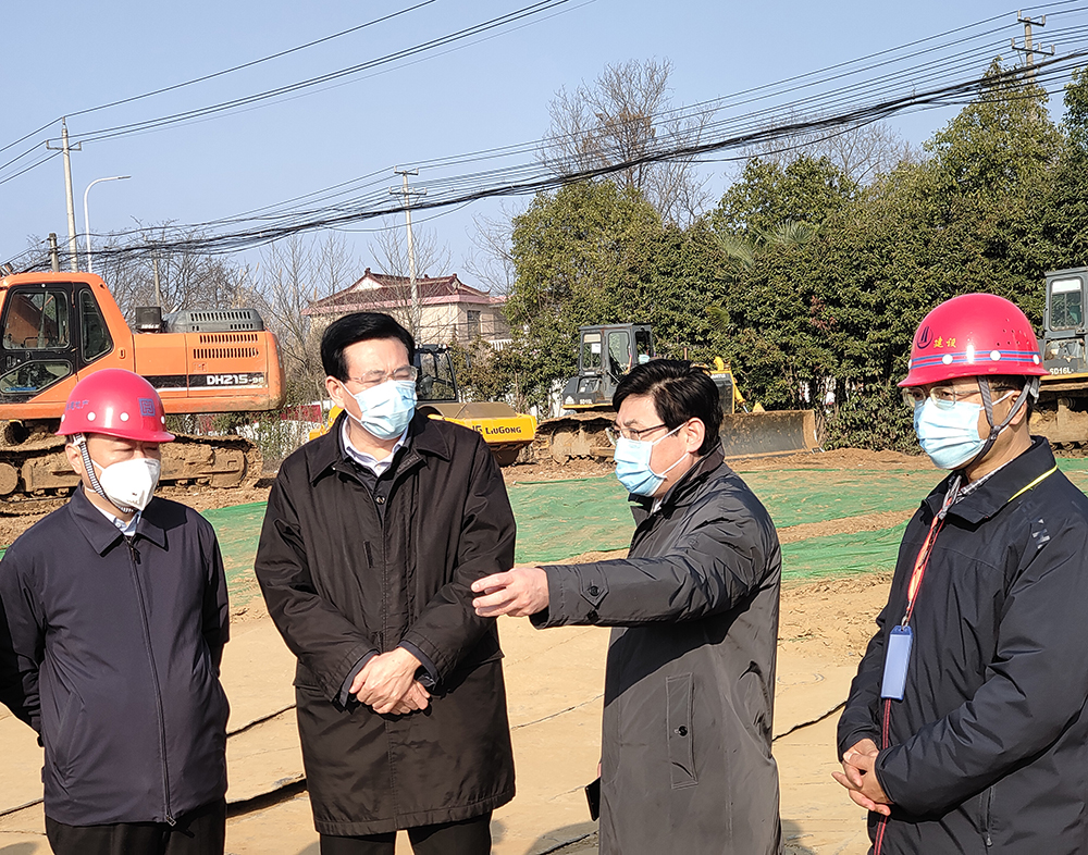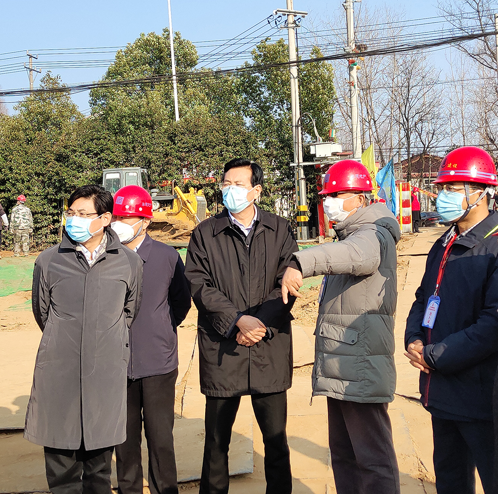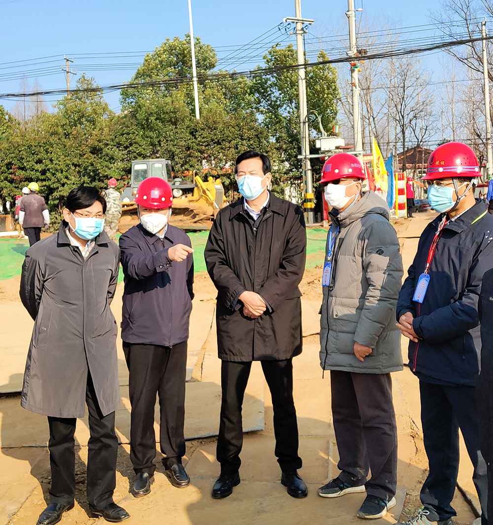 揚(yáng)建網(wǎng)訊 2月9日下午3時(shí)許,揚(yáng)州市副市長(zhǎng)何金發(fā)、蘇北醫(yī)院院長(zhǎng)束余聲再次來(lái)我集團(tuán)蒼頡山病區(qū)項(xiàng)目督導(dǎo)視察項(xiàng)目建設(shè)進(jìn)展情況。