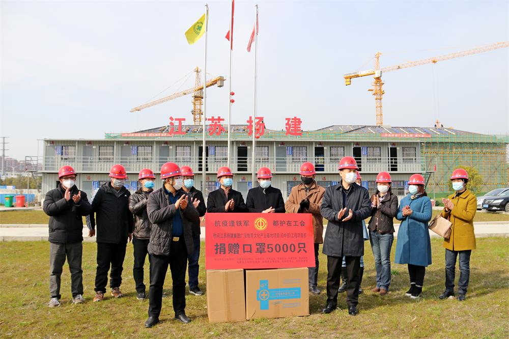 我集團副總經(jīng)理陳寶中代表項目部接受了捐贈,并對市總工會及各建管單位捐贈口罩表示感謝。他表示,目前集團各大項目在做好防疫措施的基礎(chǔ)上已全面復(fù)工,揚建人一定會確保生產(chǎn)的平穩(wěn)、安全、有序,同時不負市總工會和社會各界的援助和關(guān)注,在維護好職工安全健康權(quán)益的基礎(chǔ)上,把疫情期間延誤的工期搶回來。