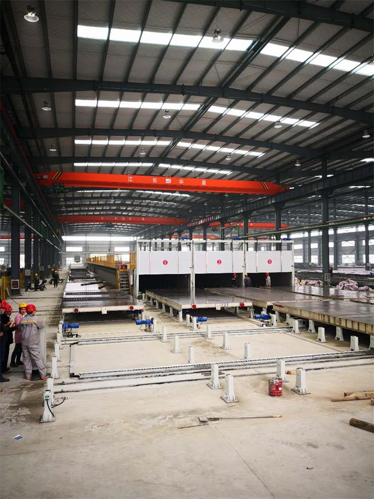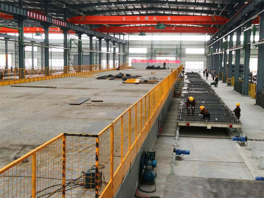 當(dāng)前,利好的產(chǎn)業(yè)形勢、逐增的業(yè)務(wù)訂單、多樣的構(gòu)件種類,對華晟公司的生產(chǎn)提出了新的要求。本著“改進(jìn)工藝、釋放產(chǎn)能”的目的,華晟公司經(jīng)理室超前謀劃,從產(chǎn)能、工藝流程、模臺周轉(zhuǎn)率、車間現(xiàn)有場地條件等方面綜合考慮,確定了第三跨固定模臺車間改造為自動化生產(chǎn)線和固定模臺生產(chǎn)線相結(jié)合的“隧道窯立體綜合生產(chǎn)線”。該生產(chǎn)線建成后,在各類構(gòu)件生產(chǎn)、產(chǎn)能輸出、模臺利用率、養(yǎng)護(hù)窯效能、設(shè)備造價上具有明顯的優(yōu)勢。