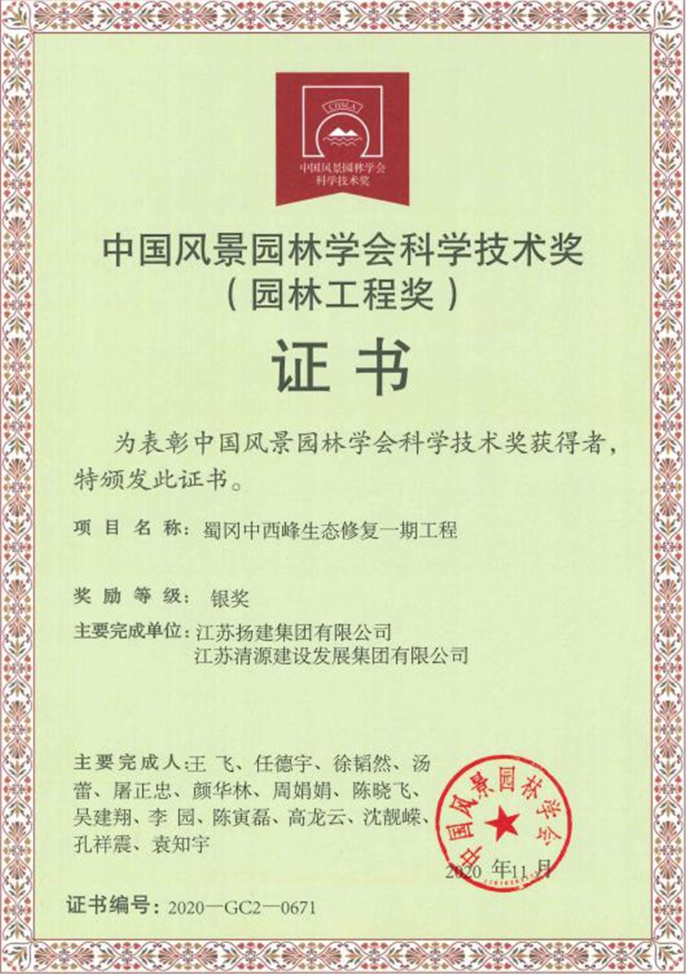 集團喜獲中國風景園林學會科學技術獎銀獎