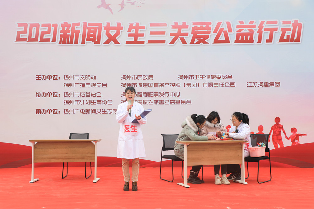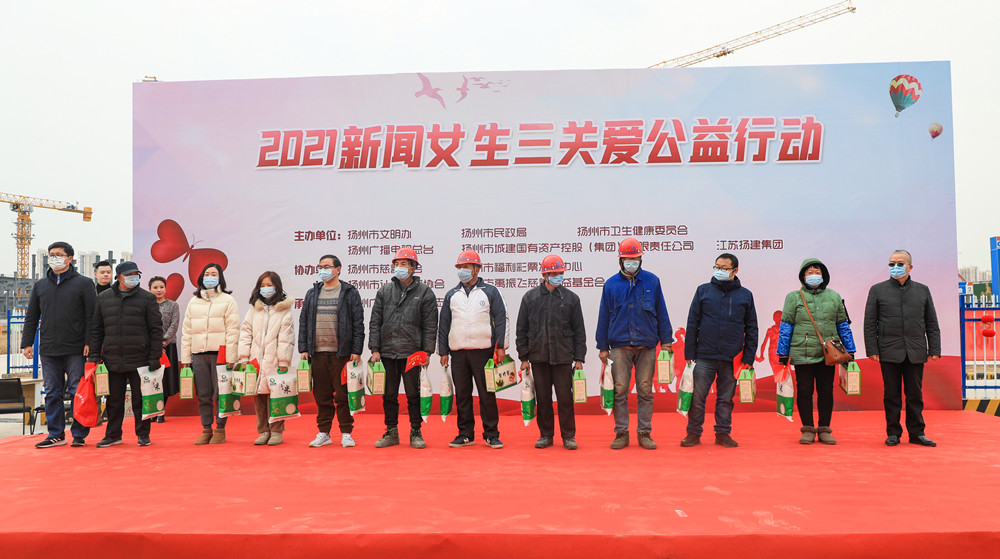 揚(yáng)建網(wǎng)訊 1月16日下午1點(diǎn),由揚(yáng)州市文明辦、揚(yáng)州市民政局、揚(yáng)州市衛(wèi)健委、揚(yáng)州廣電總臺(tái)、揚(yáng)州市城建國有資產(chǎn)控股(集團(tuán))有限責(zé)任公司和揚(yáng)建集團(tuán)共同主辦的“2021新聞女生三關(guān)愛大型公益行動(dòng)”在揚(yáng)州市新婦女兒童醫(yī)院(頤和醫(yī)療健康中心)項(xiàng)目部順利舉行。揚(yáng)州市婦幼保健院副書記、副院長郝思龍、集團(tuán)黨委副書記、工會(huì)主席張振新、集團(tuán)倉頡山項(xiàng)目負(fù)責(zé)人丁國偉等出席本次活動(dòng)。