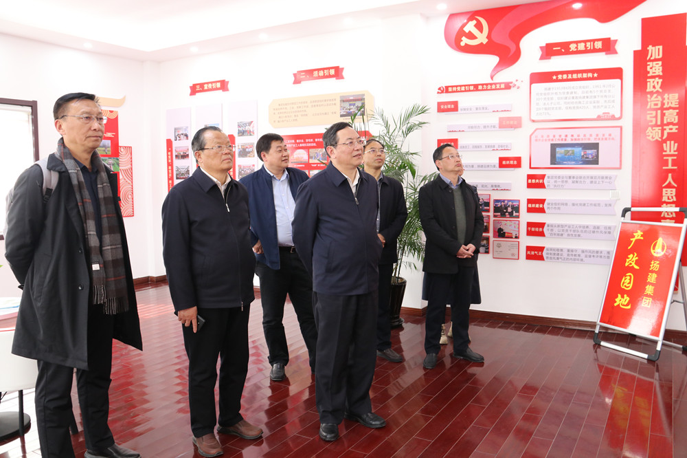 會(huì)議開始前,雙方黨員干部共同參觀了我集團(tuán)“產(chǎn)改園地”展廳,該展廳共有“政治引領(lǐng)”“工匠培育”“機(jī)制創(chuàng)新”“和諧共創(chuàng)”四個(gè)篇章,通過參觀,省土木建筑學(xué)會(huì)一行領(lǐng)導(dǎo)對(duì)揚(yáng)建集團(tuán)產(chǎn)業(yè)工人隊(duì)伍改革建設(shè)情況有了更加詳實(shí)的了解。