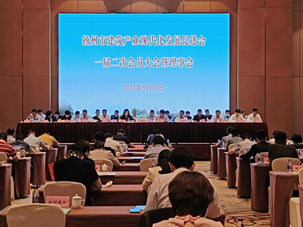 揚(yáng)建網(wǎng)訊 5月10日,揚(yáng)州市建筑產(chǎn)業(yè)現(xiàn)代化發(fā)展促進(jìn)會(huì)一屆二次會(huì)員大會(huì)在揚(yáng)州市皇冠假日酒店召開,我集團(tuán)梁云彪、鄒厚存、耿杰等領(lǐng)導(dǎo)出席了會(huì)議。