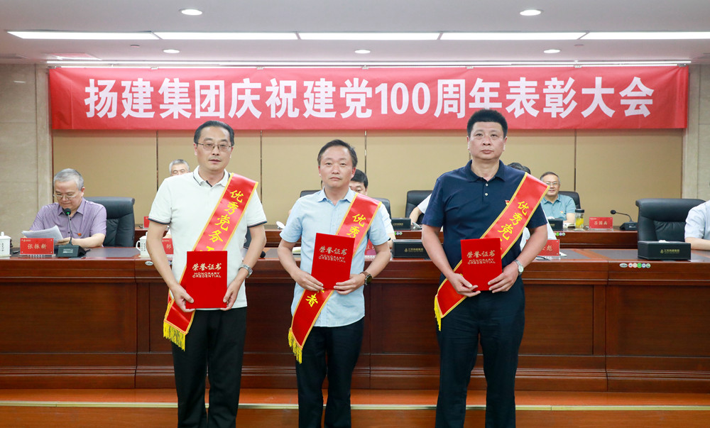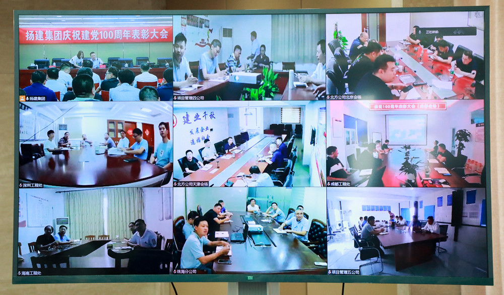 揚(yáng)建網(wǎng)訊 6月26日下午三點(diǎn),集團(tuán)黨委在文昌辦公區(qū)14樓會(huì)議室召開了慶祝建黨100周年表彰大會(huì)。會(huì)議由集團(tuán)黨委副書記張振新同志主持,集團(tuán)在揚(yáng)領(lǐng)導(dǎo)、總部中層管理人員、在揚(yáng)基層單位黨政負(fù)責(zé)人、黨員代表參加。上海、新疆、北方、深圳、珠海、海南等外埠?jiǎn)挝煌絽⒓恿艘曨l會(huì)議。