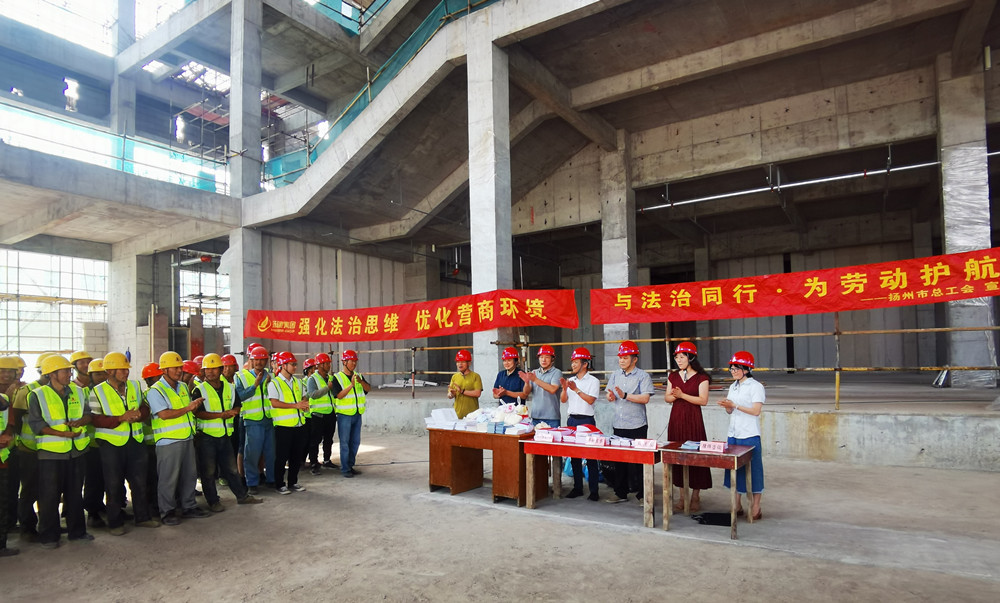 揚建網訊 為發(fā)揮黨員先鋒模范作用和黨員領導干部表率作用,6月24日下午,市建管處聯合市總工會、市司法局、市勞動監(jiān)察在我集團揚州高等職業(yè)技術學校項目現場開展“我為群眾辦實事”黨員志愿服務活動。市建管處吳建華主席及其他領導、市總工會、市司法局、市勞動監(jiān)察相關領導、我集團公司副總經理劉海斌、企業(yè)管理部部長何平等40余人參與活動。