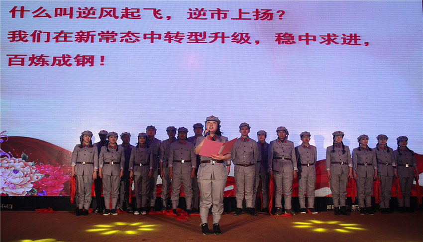在華達(dá)公司員工表演的開場鼓《揚(yáng)門女將》節(jié)目之后,曹德榮董事長以上聯(lián)“榮升特級、躋身百強(qiáng),再接再厲奮步十三五”、下聯(lián)”深入轉(zhuǎn)型、持續(xù)創(chuàng)新,群策群力共鑄新輝煌”、橫批“新起點(diǎn)新跨越”的春聯(lián),回顧過去、展望未來,并作了熱情洋溢的新春賀詞。