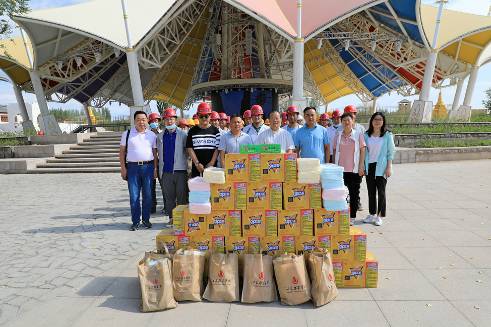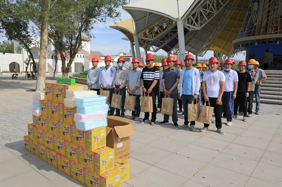 揚(yáng)建網(wǎng)訊 7月14日至20日,集團(tuán)理事會主席曹德榮、工會主席孔凡裕等一行五人先后來到北方公司天津招商公園1872項目、新疆分公司西部烏鎮(zhèn)項目慰問一線施工人員,為冒著酷暑奮戰(zhàn)在一線的項目部管理人員、施工人員送去了飲料等防暑降溫用品。