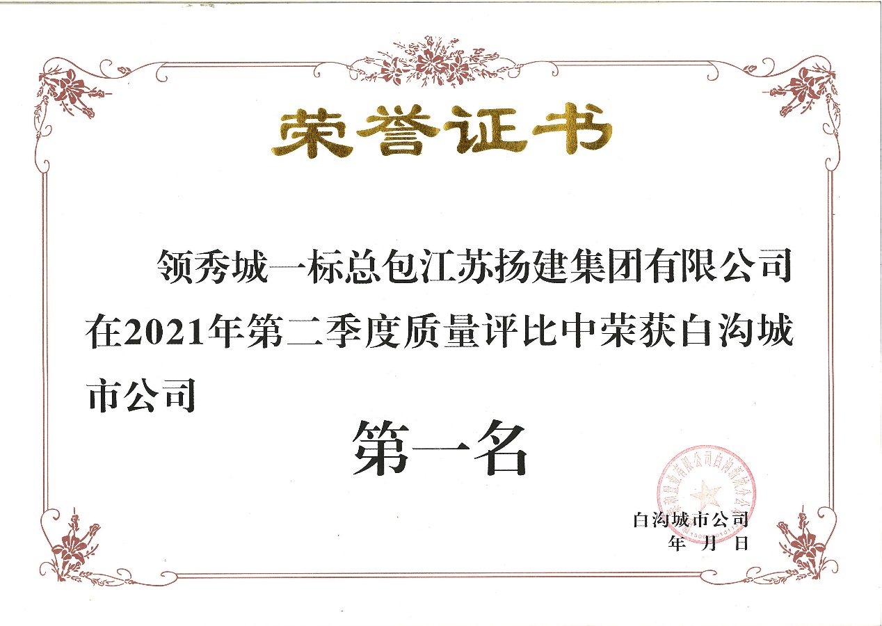 白溝領(lǐng)秀城項目榮獲業(yè)主方二季度質(zhì)量評比第一名