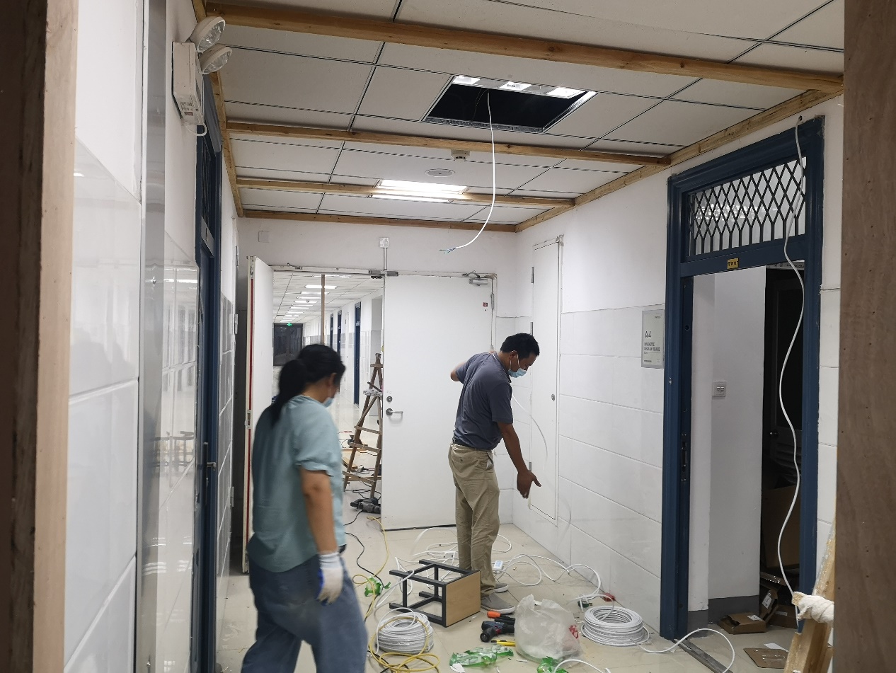 8月5日,一公司接到了揚州經(jīng)濟技術(shù)開發(fā)區(qū)關(guān)于江蘇旅游職業(yè)學(xué)院三幢宿舍樓隔離點改造工程的指令,并將任務(wù)分配到晶澳項目部,項目經(jīng)理涂劍超、項目工程師徐衎立刻火速奔赴施工現(xiàn)場,投入到緊張的施工任務(wù)布置中。本次的施工任務(wù)主要是三幢宿舍樓潔凈區(qū)和隔離區(qū)之間的緩沖區(qū)分隔及封閉。由于本次新冠病毒為德爾塔變種病毒,傳染性非常強,為確保堅守一線“天使們”的安全,避免醫(yī)護人員和病人交叉感染,項目部要求施工人員必須嚴格按照集中隔離醫(yī)學(xué)觀察點的設(shè)置標準進行施工。受疫情影響,改造任務(wù)面臨材料調(diào)動受阻,施工人員可選擇性小、施工時間緊迫等問題,在項目管理一公司及開發(fā)區(qū)的大力支持下,項目部施工人員通宵達旦,24小時內(nèi)保質(zhì)保量的完成了此項艱巨任務(wù)。另:8月6日晚19:00點,晶澳項目部又接到了八里鎮(zhèn)政府“臨港賽夫孵化基地”核酸檢測點通道分割任務(wù),分割通道長約1000米,項目部再次投入到緊張的施工中,在8月7日零點完成任務(wù)。