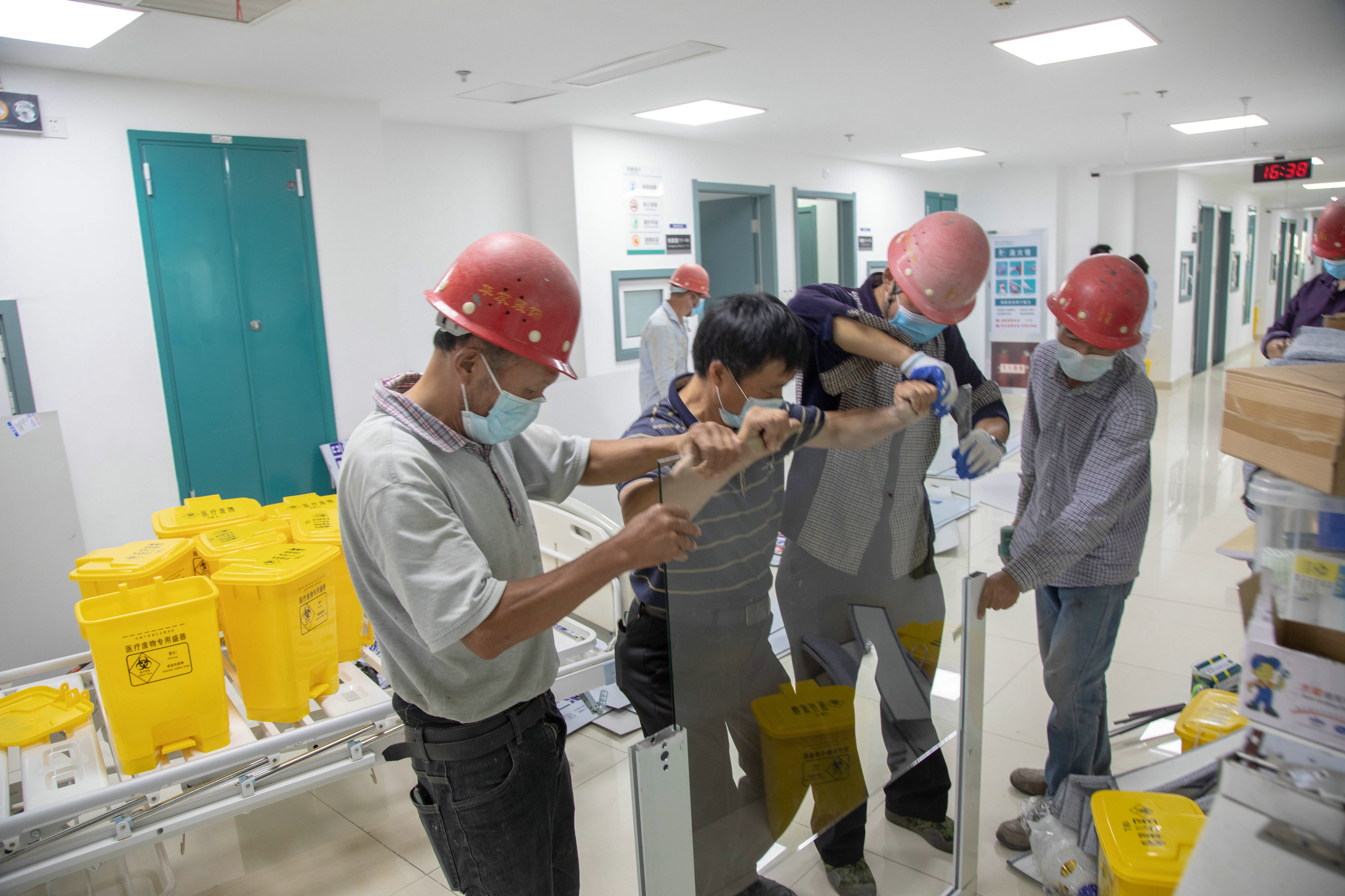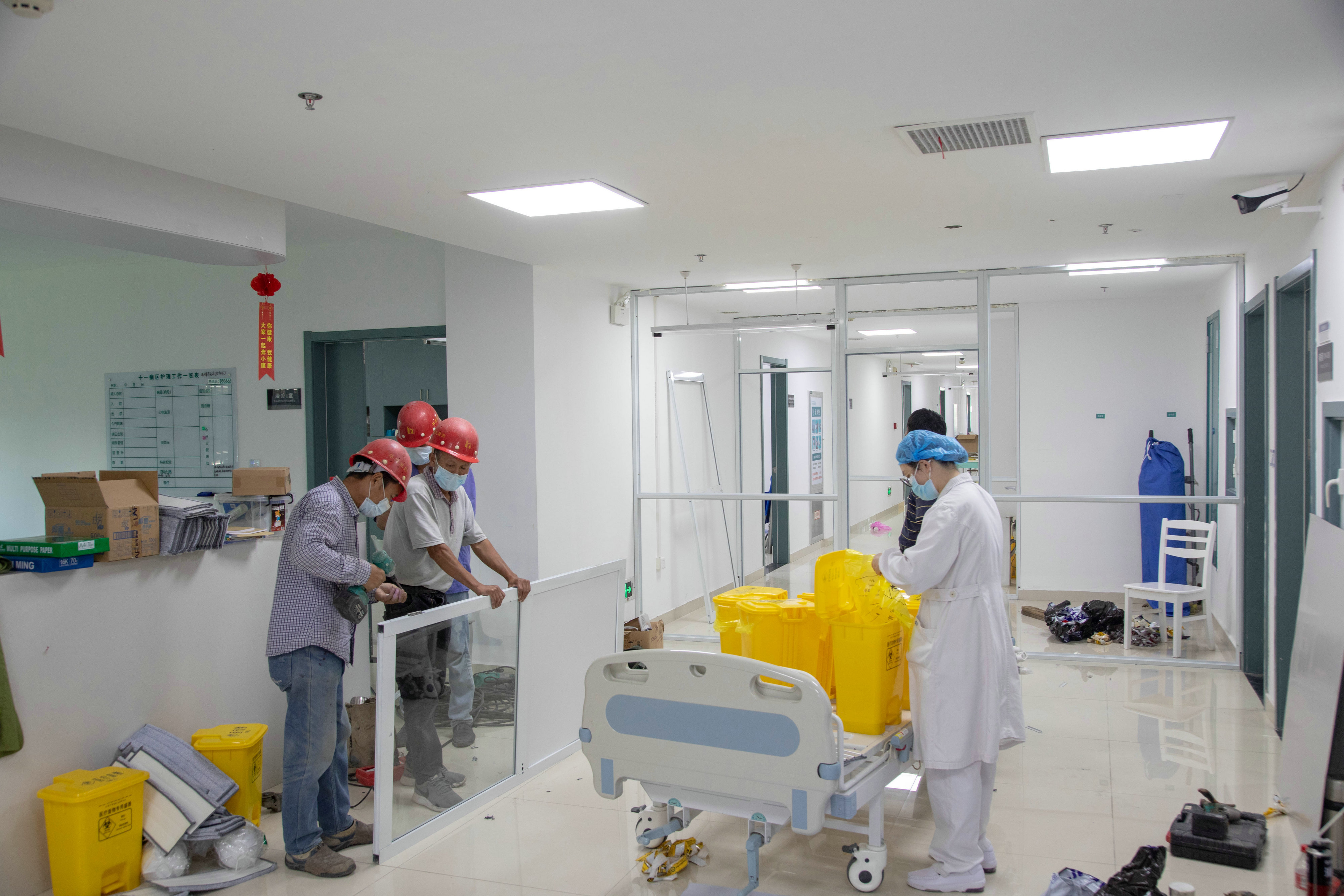 就在4日晚8點即將完工時,這時院方又臨時下達了新的工作任務(wù)——再加兩個隔斷和幾十米的護欄安裝,天亮前必須完成。王學金同志隨即通知華發(fā)基地連夜加急趕工生產(chǎn),凌晨12點制作完成后立即拖回材料現(xiàn)場安裝。經(jīng)過42個小時的通宵奮戰(zhàn),終于在5日早晨完成了全部任務(wù)。完成交付任務(wù)時,駐扎在市三院的國家衛(wèi)計委專家組對施工質(zhì)量給予了肯定。任務(wù)完成后,施工人員們并沒有立即回家休息,而是原地待命,防止還有其他突發(fā)應急任務(wù)。
