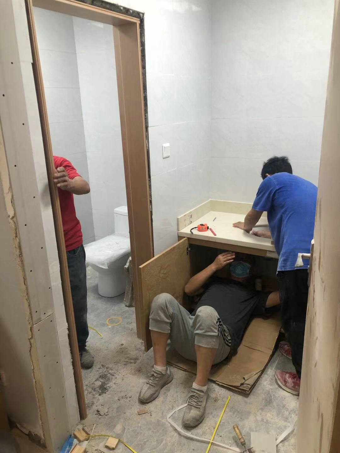 3日晚上6點半,第一項目管理中心姜小強接到了蘇中智慧城建設(shè)單位改造隔離場所的任務(wù),立即到現(xiàn)場梳理工作量,并與建設(shè)方連夜開碰頭會,次日凌晨3點半辦好了40多名施工人員的通行證,開始了蘇中智慧城C1號樓2-5層合計84間公寓的改造任務(wù)。公寓面積小,交叉作業(yè)多,工期又只有短短的48小時,但疫情就是命令,沒有絲毫退縮的余地,毫無疑問又是一場與時間搶跑的硬仗。