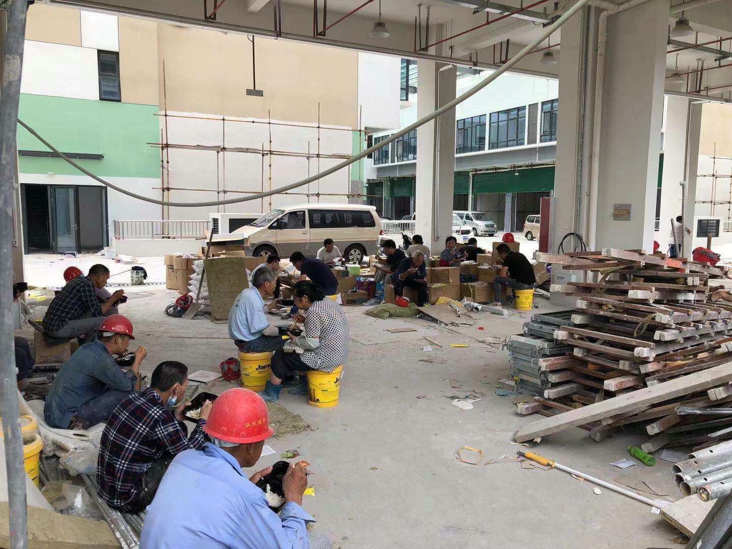 除了第一項目管理中心的小伙子們積極應戰(zhàn),第三項目管理中心朱崢光主動請纓加入戰(zhàn)斗,現(xiàn)場施工人員增至110余人。高溫天氣下大家戴著悶熱的口罩揮汗如雨,身上的衣服濕了又干,干了又濕,留下一道道白色印記。由于疫情期間物資缺乏,該項目又在偏遠的沙頭鎮(zhèn),公司尋求多方渠道找到市區(qū)專供防疫人員的快餐店,竭力說服商家答應供餐,兩天來數(shù)次往返將每一頓飯菜、飲料、防暑藥品運送到現(xiàn)場,為施工人員提供堅實的后勤保障。經(jīng)過現(xiàn)場施工人員兩天兩夜通宵達旦的努力,終于及時完成了交付任務(wù)。