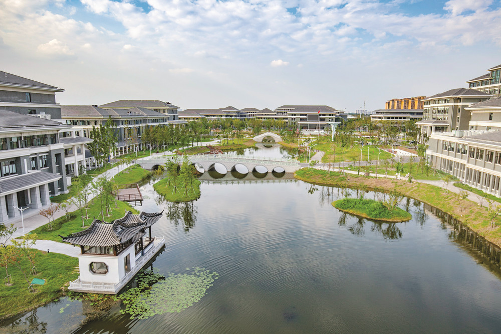 江蘇旅游職業(yè)學院一期項目由揚州臨港教育發(fā)展有限公司投資建設,是集團公司總承包的第一個PPP項目,由項目管理一公司具體實施,環(huán)保公司、華發(fā)公司、樁基公司參建??偨ㄖ娣e20.28萬㎡,框架結構,2016年12月15日開工,2018年12月20日備案,工程總造價9.37億元,工程首創(chuàng)性地提出了開放式校園,以5A級景區(qū)標準建設。設計注重多元化融合,打造理念最新、環(huán)境最美、文化最優(yōu)的旅游大學。規(guī)劃了一軸(東西中軸),兩片(南片教學區(qū)與北片生活區(qū)),一帶(濱水休閑帶)的空間格局。創(chuàng)新性采用產(chǎn)教研游融合,教學功能和研發(fā)功能同步發(fā)展,實現(xiàn)人與自然、社區(qū)、校園和諧發(fā)展。本工程還獲得中施協(xié)工程建設項目設計水平評價三等成果、二星級綠色建筑設計標識證書、江蘇省城鄉(xiāng)建設系統(tǒng)優(yōu)秀勘察設計三等獎,江蘇省優(yōu)質(zhì)工程獎“揚子杯”、中國建筑工程裝飾獎(裝飾工程)、江蘇省建筑施工標準化星級工地;江蘇省省級工法3項、授權發(fā)明和實用新型專利各1項、江蘇省QC質(zhì)量成果獎2項。