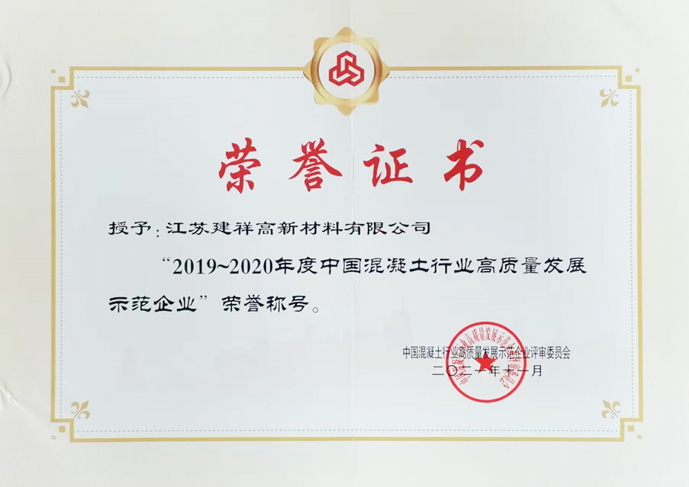 建祥獲評(píng)中國混凝土行業(yè)高質(zhì)量發(fā)展示范企業(yè)