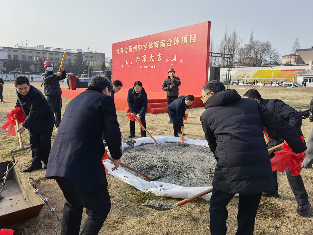 揚(yáng)建網(wǎng)訊 2022年 1月18日,隨著最后一方混凝土的澆筑結(jié)束,由我集團(tuán)一公司承建的揚(yáng)州中學(xué)體育綜合體項(xiàng)目主體順利封頂。揚(yáng)州市教育局局長(zhǎng)周應(yīng)華、揚(yáng)州中學(xué)校長(zhǎng)薛義榮、集團(tuán)公司總經(jīng)理鄒厚存、集團(tuán)執(zhí)行總裁陳滸、揚(yáng)州科教集團(tuán)有限公司總經(jīng)理吳俊及相關(guān)參建單位人員均到場(chǎng)參加。