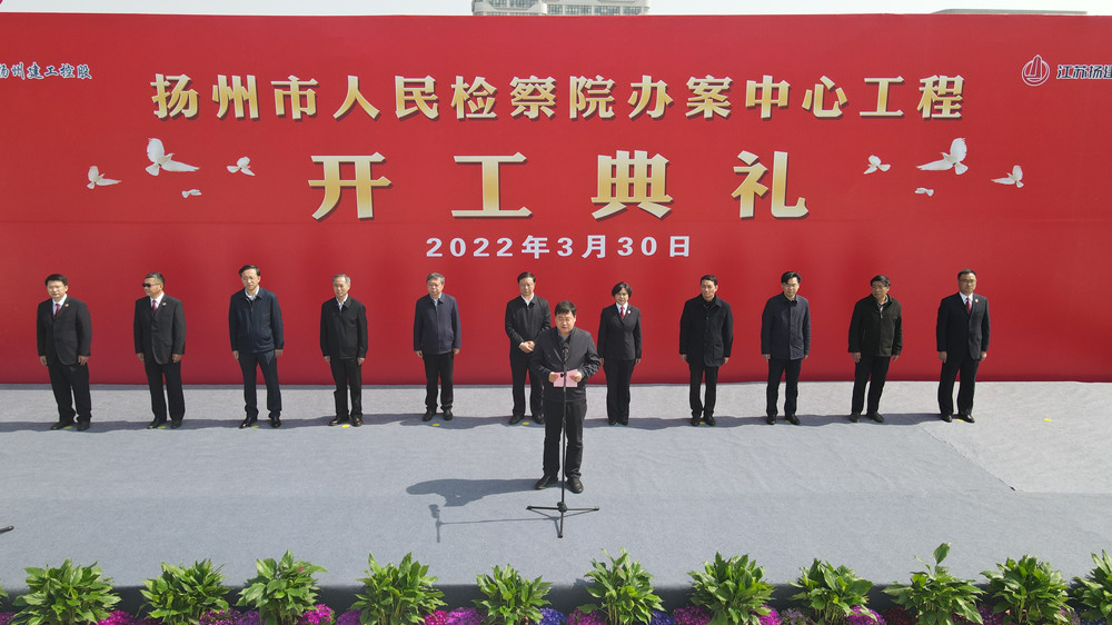 揚(yáng)建網(wǎng)訊 3月30日上午10點(diǎn)18分,由我集團(tuán)項(xiàng)目管理二公司承建的揚(yáng)州市人民檢察院辦案中心工程順利開(kāi)工。揚(yáng)州市委常委、政法委書(shū)記、邗江區(qū)委書(shū)記張耀武、市檢察院黨組書(shū)記、檢察長(zhǎng)鮑書(shū)華、市建工控股董事長(zhǎng)王宏、我集團(tuán)公司董事長(zhǎng)康往東,以及市人大常委會(huì)、市紀(jì)委監(jiān)委、市財(cái)政局、市住房和城鄉(xiāng)建設(shè)局、市自然資源和規(guī)劃局相關(guān)領(lǐng)導(dǎo)參加了開(kāi)工儀式。