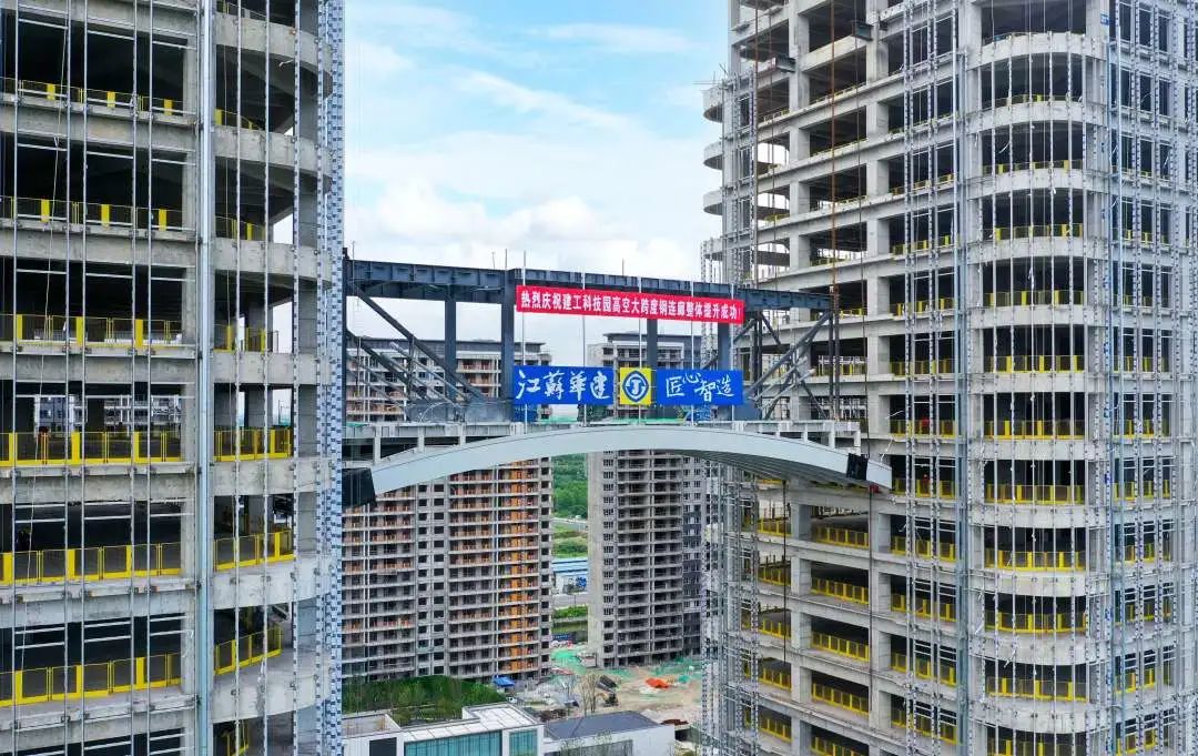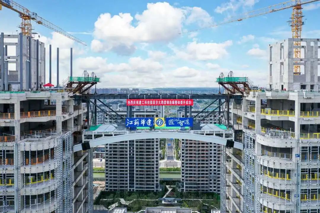建工科技園高空大跨度鋼連廊提升圓滿完成