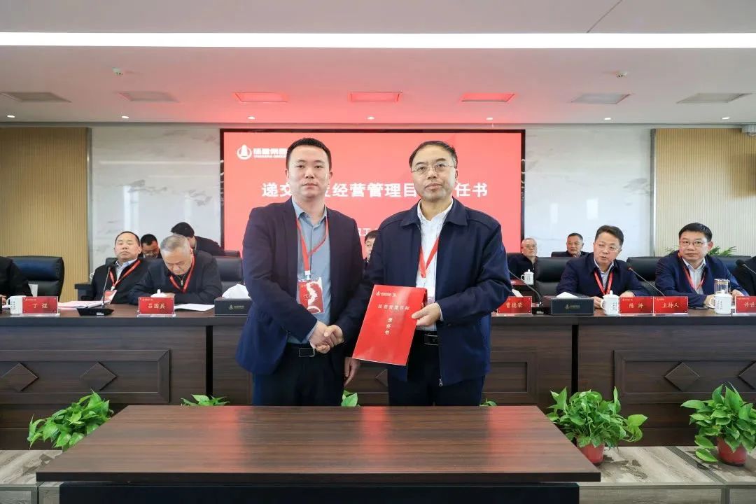會上,北方公司等8家單位登臺向集團(tuán)公司總經(jīng)理遞交了年度《經(jīng)營管理目標(biāo)責(zé)任書》;項(xiàng)目管理一公司等6家單位登臺向集團(tuán)公司總經(jīng)理遞交了年度《安全生產(chǎn)目標(biāo)責(zé)任書》。