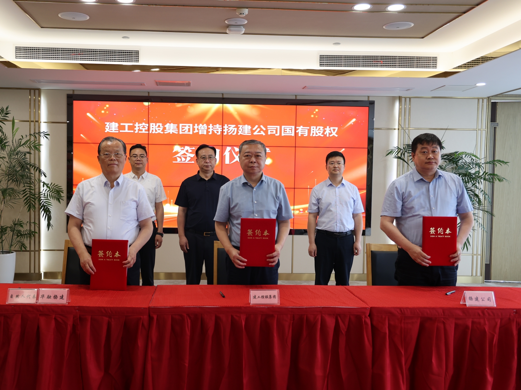 在市國(guó)資委授權(quán)代表的見證下,王宏、康往東、曹德榮分別代表建工控股集團(tuán)、揚(yáng)建公司、華融公司及自然人股東,正式簽署《增資擴(kuò)股協(xié)議書》。本次增持完成以后,江蘇揚(yáng)建集團(tuán)有限公司注冊(cè)資本金將從5億元增加至7億元,其中揚(yáng)州建工控股集團(tuán)有限公司持股比例42.86%為第一大股東,揚(yáng)建重新成為國(guó)有控股企業(yè)。