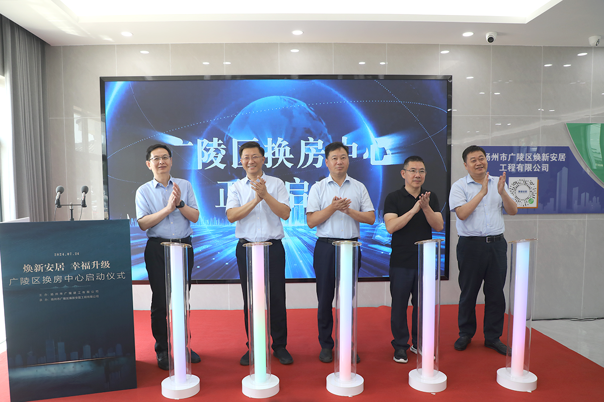 揚(yáng)建網(wǎng)訊 7月24日上午,廣陵區(qū)換房中心啟動(dòng)儀式在揚(yáng)建集團(tuán)福運(yùn)門辦公區(qū)(揚(yáng)州市廣陵區(qū)南通東路80號)隆重舉行。揚(yáng)州市住房和城鄉(xiāng)建設(shè)局黨委書記、局長徐安朝,廣陵區(qū)委副書記、區(qū)長郎俊,揚(yáng)州市住房和城鄉(xiāng)建設(shè)局黨委委員、副局長朱元,江蘇揚(yáng)建集團(tuán)有限公司黨委書記、董事長康往東出席,廣陵區(qū)委常委、副區(qū)長王兵,江蘇揚(yáng)建集團(tuán)有限公司總經(jīng)理鄒厚存出席并致辭,市住建局、自然資源和規(guī)劃分局、廣陵經(jīng)開區(qū)、廣陵建工、相關(guān)街道社區(qū)負(fù)責(zé)人以及廣陵區(qū)3大國有房企負(fù)責(zé)人等領(lǐng)導(dǎo)齊聚啟動(dòng)儀式現(xiàn)場,共同見證這一創(chuàng)新時(shí)刻。