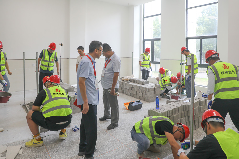 揚建網(wǎng)訊 7月5日,揚建集團砌筑工企業(yè)自主職業(yè)技能等級認定工作在揚建產(chǎn)業(yè)園展開,共計32名一線職工參加了此次砌筑工(五級/初級工)職業(yè)技能等級認定工作。本次認定嚴格按照國家職業(yè)標(biāo)準(zhǔn)規(guī)范和揚州市人社局相關(guān)要求,采用“理論測試+實操考核”模式對考生進行綜合評價,并通過省人社平臺對認定合格者頒發(fā)職業(yè)技能等級證書。
