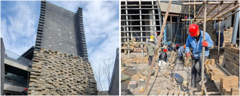 保護和傳承城市歷史文化是第一原則。通過歷史建筑重塑,增強文化認同感,以延續(xù)城市文脈。項目啟動之初,就秉承“傳承歷史風貌,減少對周邊的壓迫感”的理念。在如何實現(xiàn)雙曲面城墻造型的問題上,項目團隊采用“鋼龍骨+干掛砌筑”的工藝,摒棄普通砌筑方式,采用內(nèi)部增加鋼龍骨,外部通過“干掛”工藝砌筑城墻磚,每4皮設置一道水平支撐,將城墻磚“砌筑”在鋼骨架上形成整體。既實現(xiàn)了雙曲面城墻的造型,又確保了結構安全與穩(wěn)定性。