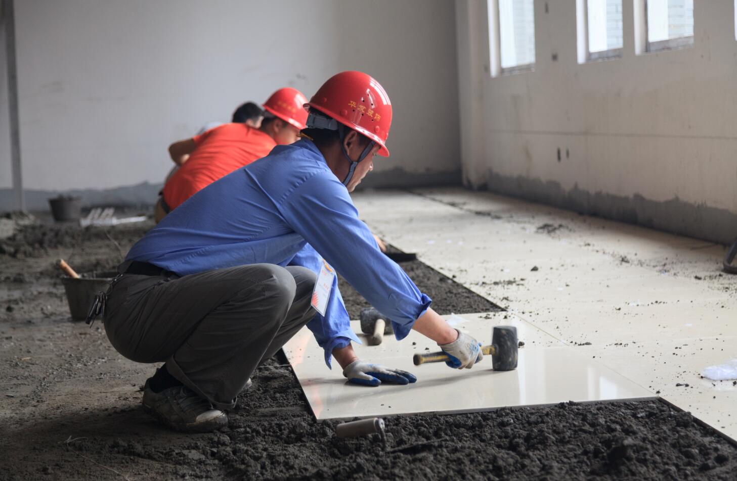 受現(xiàn)場(chǎng)工作面影響,本次競(jìng)賽活動(dòng)共有華發(fā)、市政及機(jī)電環(huán)保公司3個(gè)專(zhuān)業(yè)公司派出競(jìng)賽小組參加了比拼。其中,華發(fā)裝飾派出4個(gè)競(jìng)賽小組在電商物流學(xué)院教學(xué)樓比拼地磚鑲貼,市政公司派出3個(gè)競(jìng)賽組進(jìn)行人行道陶土磚鋪設(shè)比拼,機(jī)電環(huán)保公司派出4個(gè)競(jìng)賽小組在學(xué)生宿舍樓開(kāi)展電纜管道穿線競(jìng)賽。